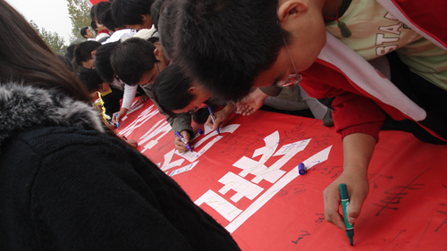 信息工程学院举行庆祝十七大胜利闭幕大型签名活动