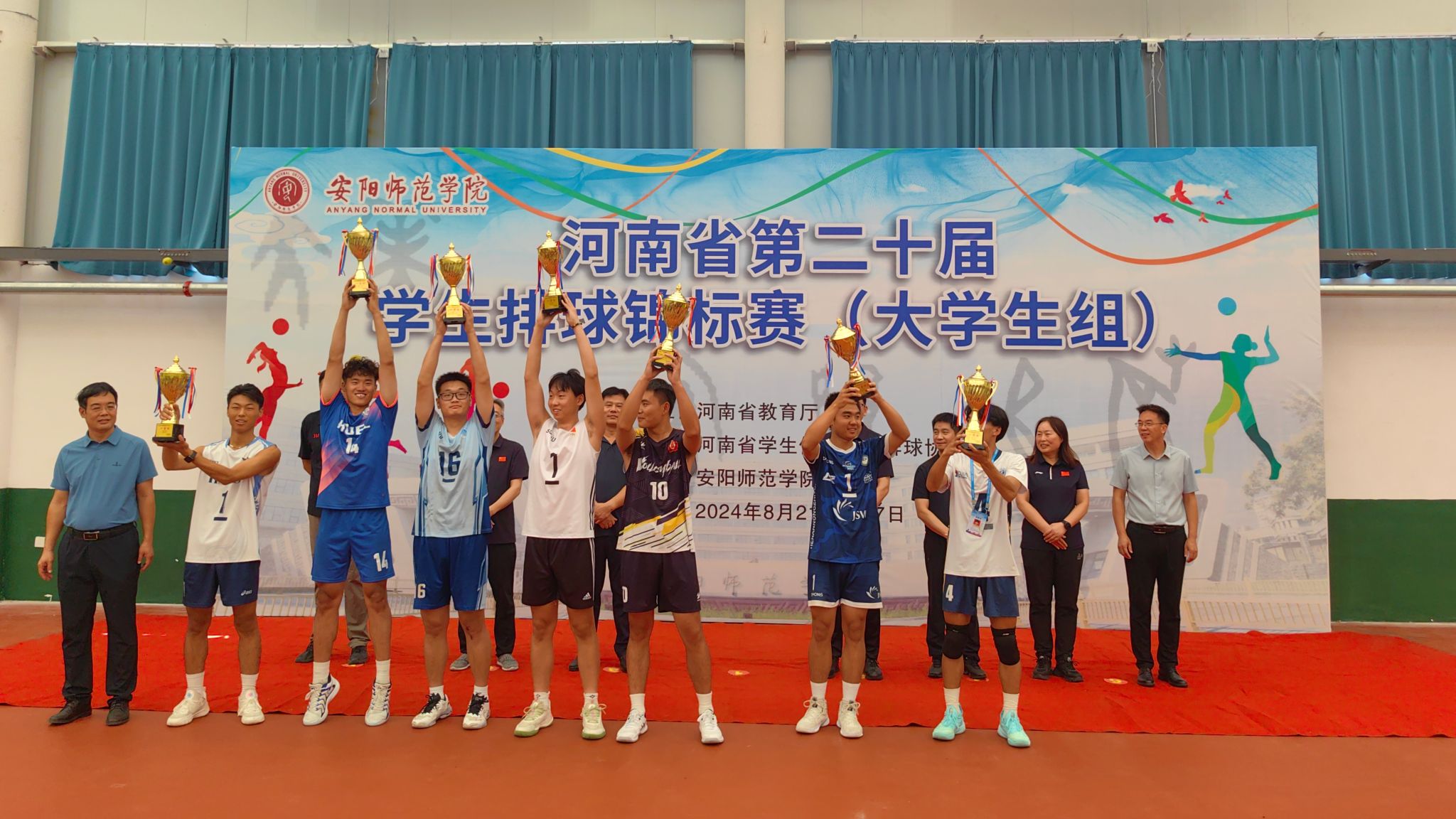 2024年8月27日,由河南省教育厅、河南省学生体育总会主办的河南省第二十届学生排球锦标赛(大学生组)在安阳师范学院落幕。我校代表队在本科男子组比赛中,经过6天8轮的激战,夺得冠军。小组赛中,我校以小组第二出线进入8强。交叉淘汰赛中,我校学生展现出了强大的心理素质和战术执行力,一路高歌...