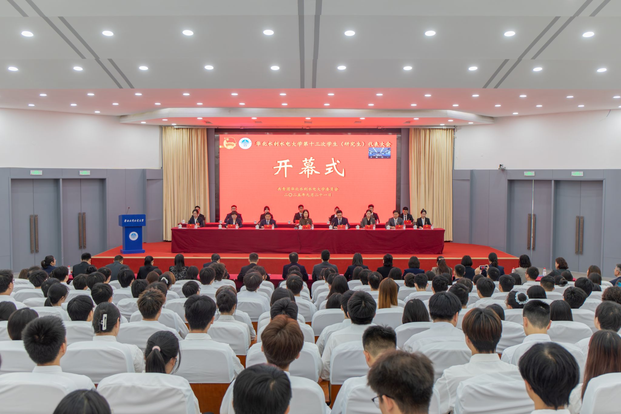 9月21日,华北水利水电大学第十三次学生(研究生)代表大会在龙子湖校区第一报告厅召开。校党委副书记焦爱萍出席开幕式并作讲话,开幕式由校团委书记谢琰主持。大会在庄严的国歌声中拉开帷幕,焦爱萍代表学校党委向大会的召开表示热烈祝贺,向出席大会的全体代表致以亲切问候,向全校青年朋友致以美...