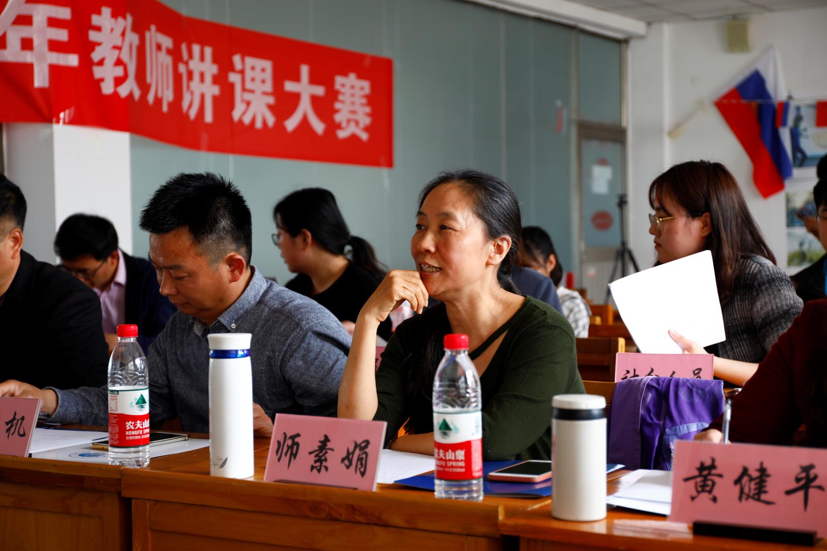为进一步提高青年教师的教学水平,培养青年教师教学能力,按照学校第十五届“菁英杯”青年教师课堂讲课大赛要求,2019年4月24日下午,乌拉尔学院在花园校区4号教学楼4209室成功举办了第一届青年教师讲课大赛复赛活动。学院特邀教学督导团组长师素娟出席并担任评委,担任评委的还有学院院长黄健平、党委书记李胜机以及学院其他领导和部分教师代表。同时,随机抽取了10名2018级相关专业学生作为评委,参与了此次复赛活动。