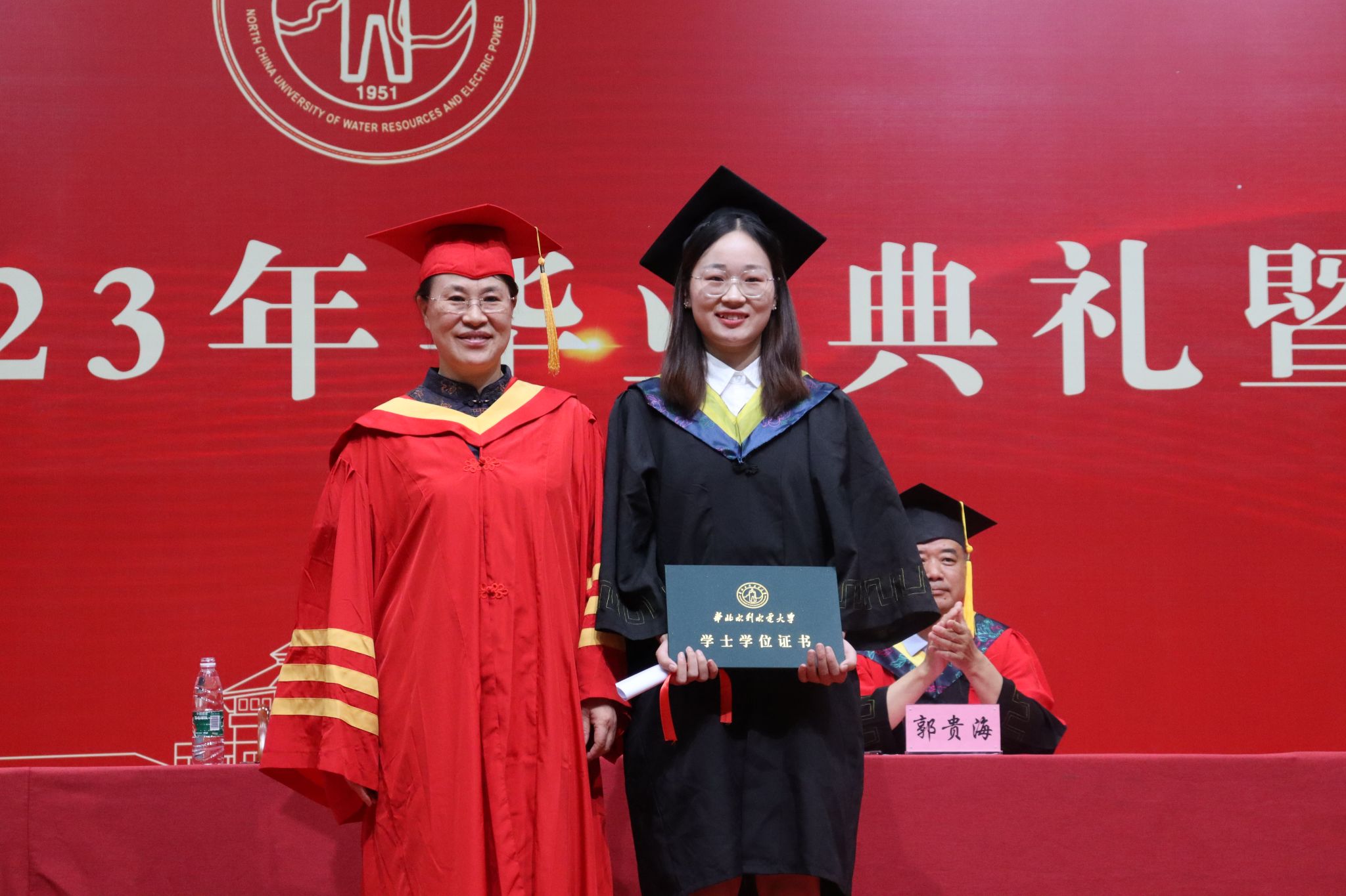毕业礼成,全体人员起立,奏唱《华北水利水电大学校歌》,典礼在校歌中落下帷幕。