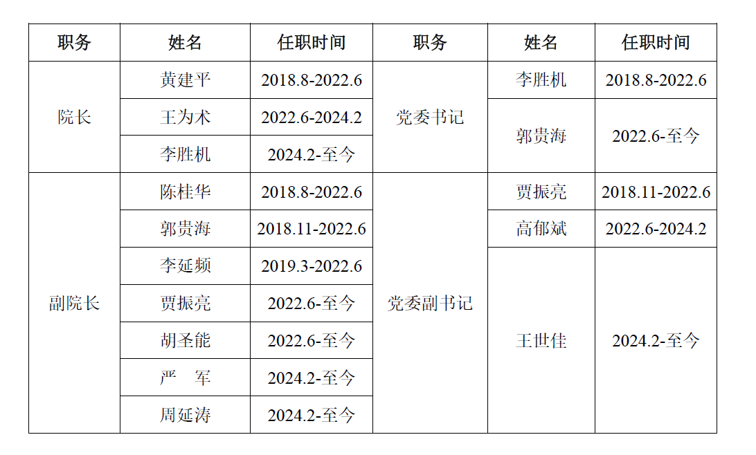 乌拉尔学院历任领导成员及其任职时间表