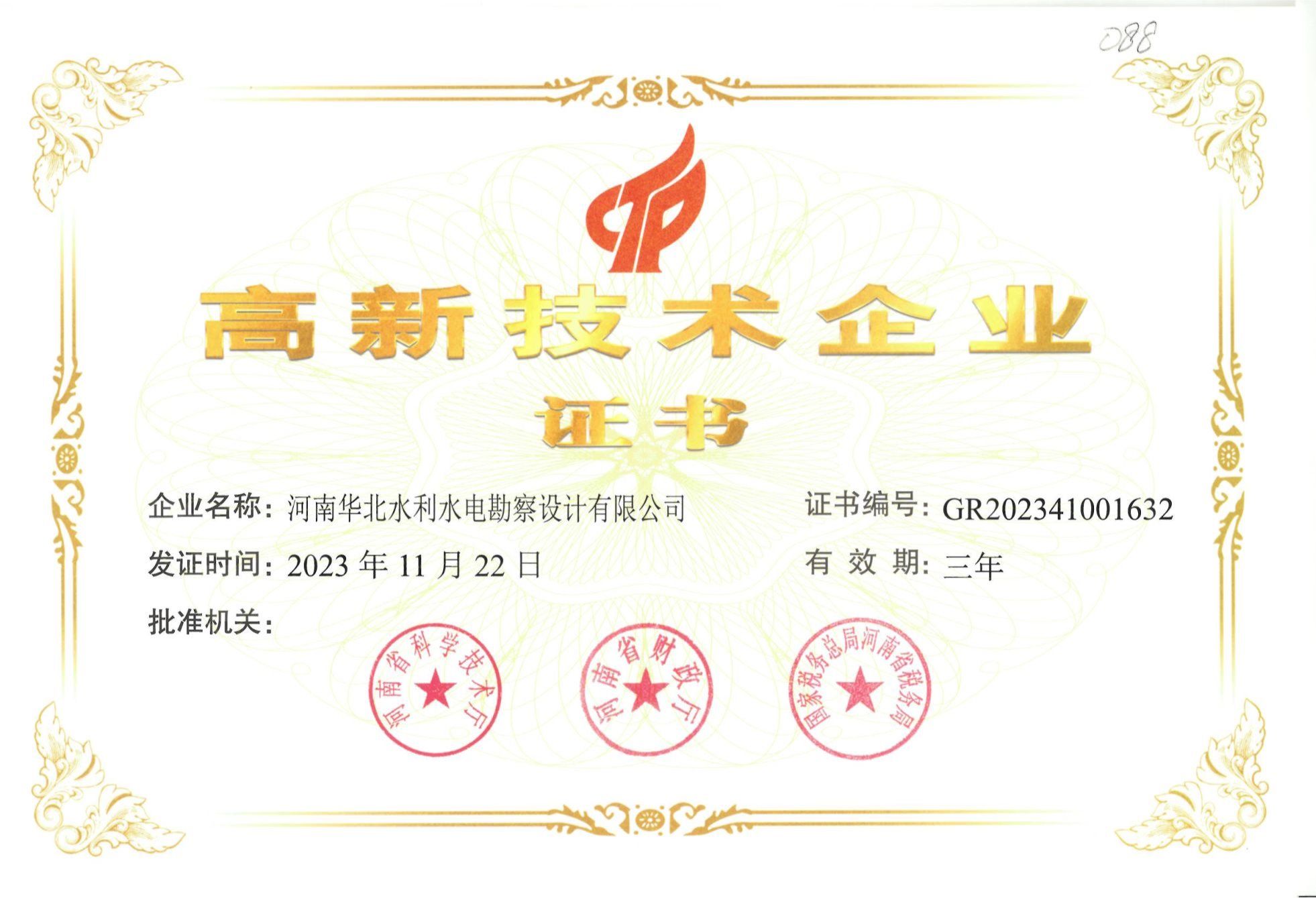 高新企业证书