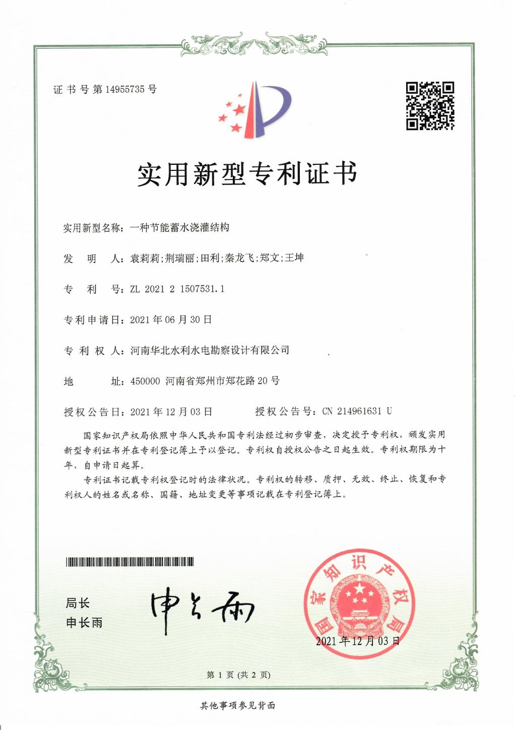 专利证书