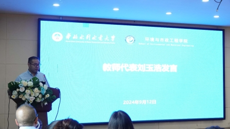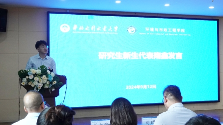 研究生代表隋鑫在发言中分享了自己对未来学术生涯的期待与规划,表达了对学院的感激之情,并号召同学们一起共同进步,在环工学院成为更优秀的自己。