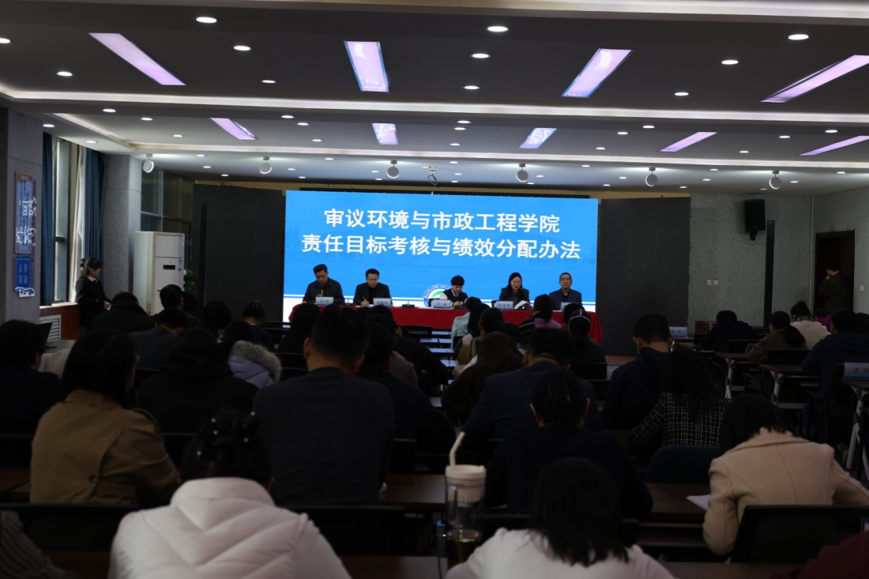 环境与市政工程学院执行院长李海华介绍了二级单位责任目标考核与绩效分配办法出台和修订的初衷和过程。为充分发挥绩效考核的导向和激励作用,调动学院教职工工作的积极性、主动性和创造性,保障和促进学院教学、科研、人才培养等各项事业稳步向好,推动学院高质量发展。根据《华北水利水电大学二级单位责任目标考核与绩效分配办法》等文件精神,结合学院实际,特制定本办法。办法坚持“岗位管理,分类考核;总量调控,保障教学;优绩优酬,兼顾公平”的原则,将教职工的收入与岗位职责、工作业绩和贡献大小挂钩,建立以激励为导向的绩效分配办法。