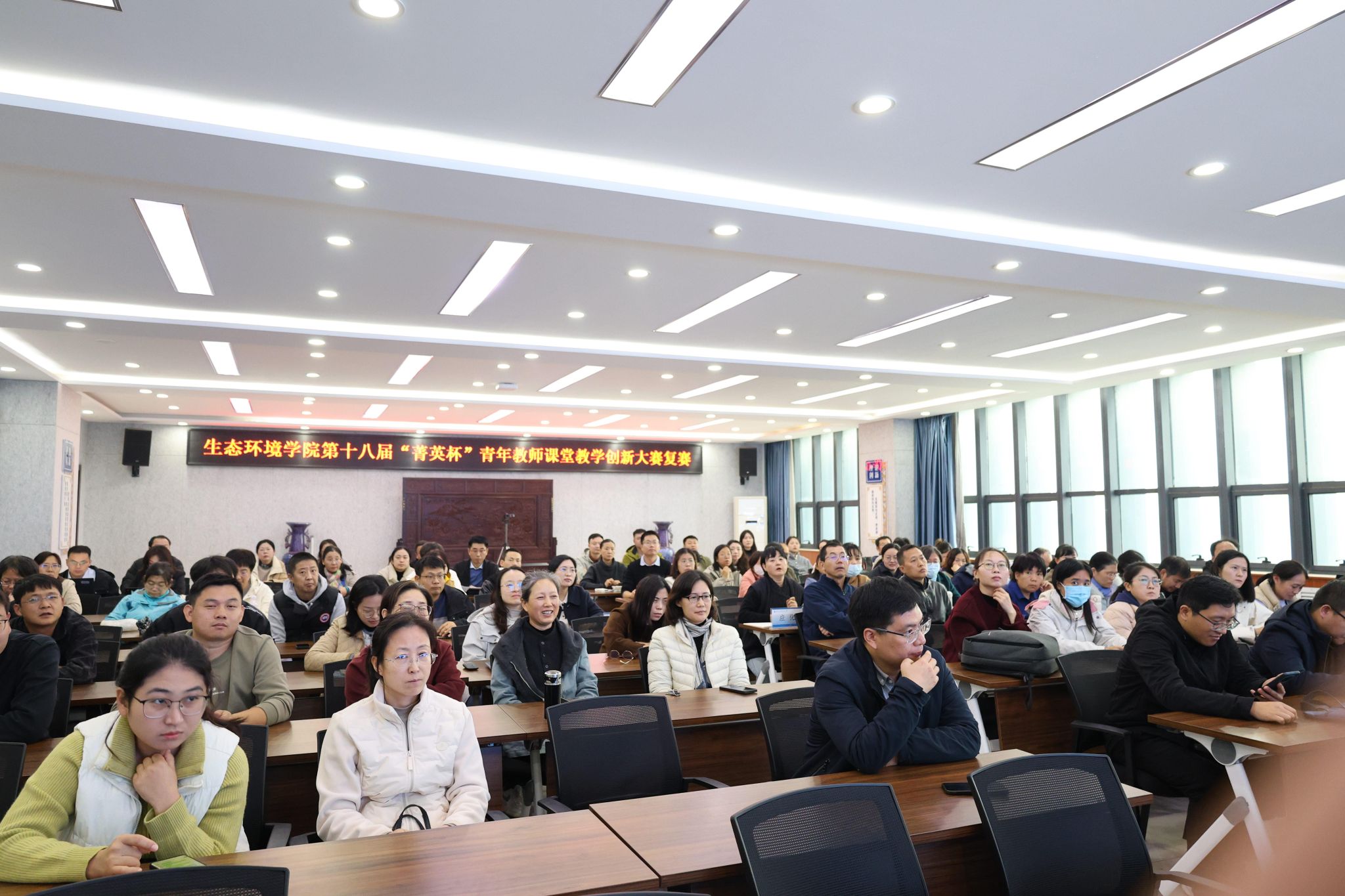 11月6日下午,生态环境学院第十八届“菁英杯”青年教师课堂教学创新大赛在龙子湖校区工训南楼511报告厅举行。经各基层教学组织推荐6名优秀青年教师参加学院复赛。学院领导班子、青年教师及学生代表到场观摩比赛。大赛邀请校级督导王海荣和张仙娥老师进行指导。