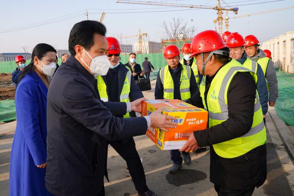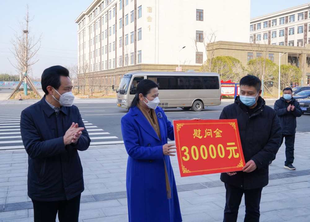 1月19日,在新春佳节来临之际,信阳市人大常委会副主任、罗山县委书记周哲,县长余国芳带领县四大家领导到华北水利水电大学江淮校区看望慰问二期项目建设者和留校工作人员,向他们送去新春的问候和祝福。