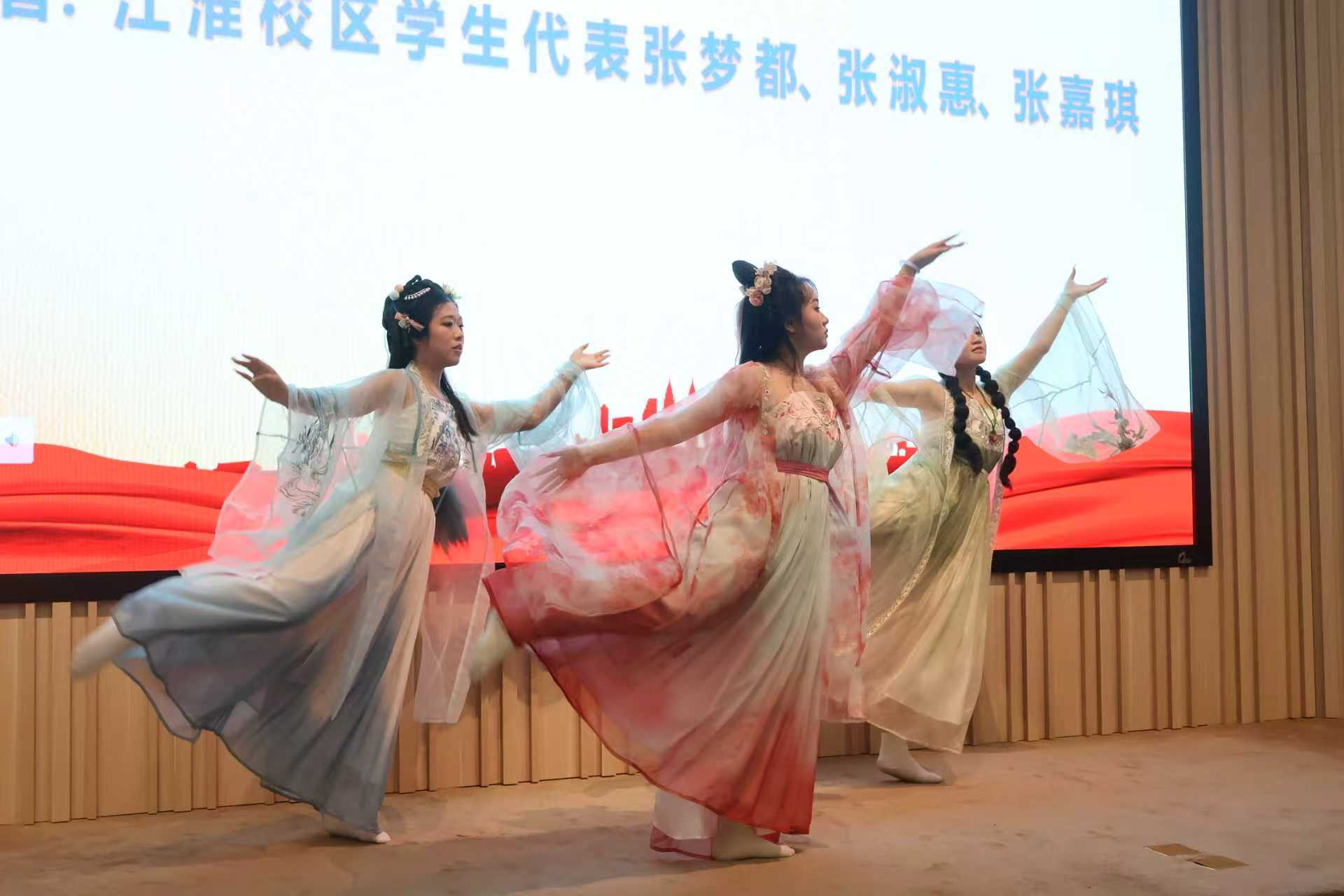 随后,江淮校区学生带来了舞蹈《繁花》、朗诵《非物质文化遗产鉴赏》等精彩纷呈的民俗表演,吸引了众多师生的目光。民俗乐器合奏及古风舞蹈等节目轮番上演,不仅展示了中国传统音乐的独特魅力,也让现场观众沉浸在浓厚的艺术氛围中。主持人还详细介绍了剪纸、糖人制作、团扇制作和皮影戏等四大非遗体验项目,激发了大家浓厚的兴趣。
