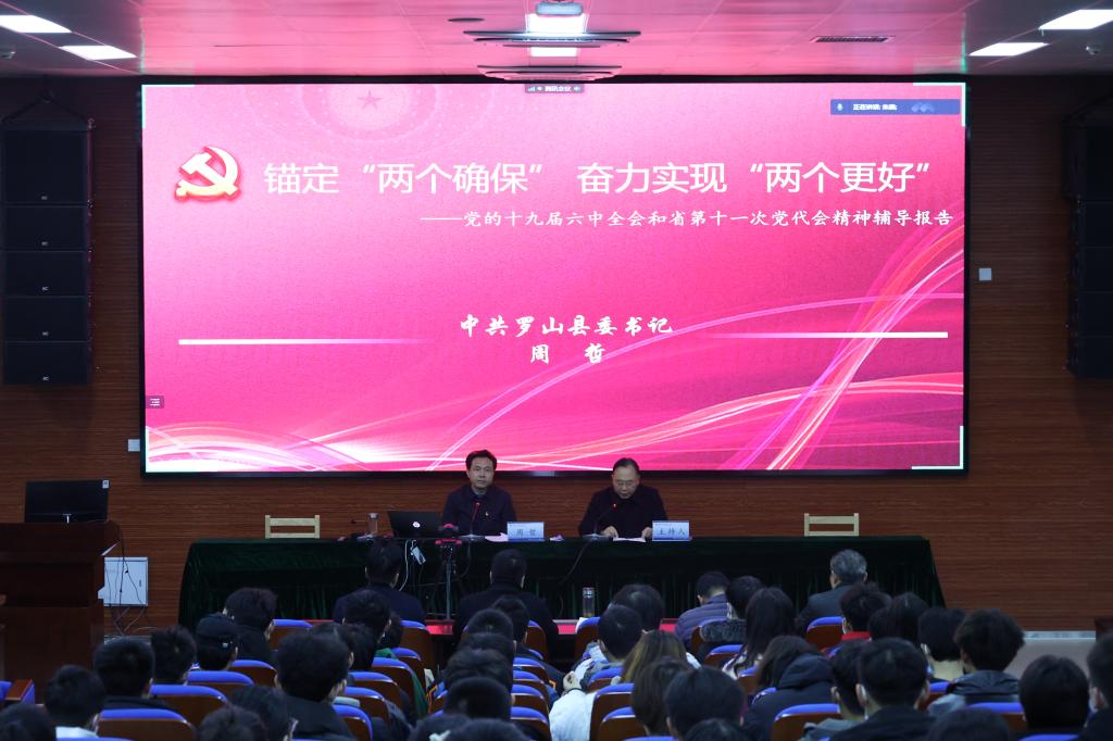 2021年12月20日,罗山县委书记周哲为江淮校区师生代表作题为《锚定“两个确保”奋力实现“两个更好”》的形势与政策报告