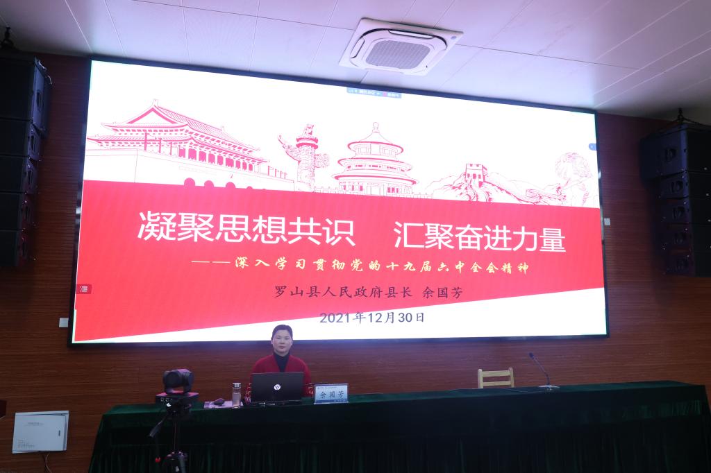 2021年12月30日,罗山县委副书记、县长余国芳为江淮校区师生代表作题为《凝聚思想共识 汇聚奋进力量》的形势与政策报告