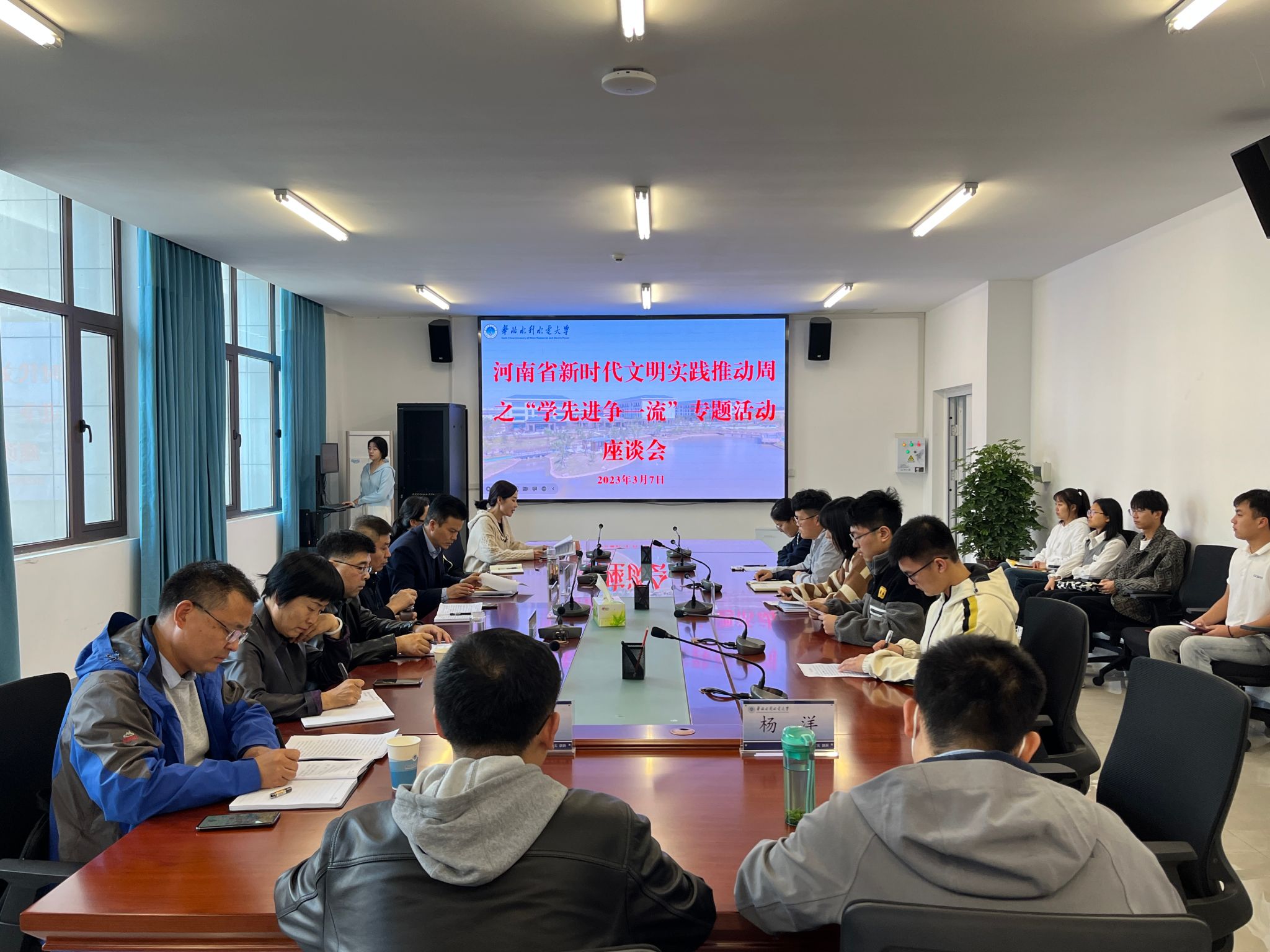 座谈会现场(一)座谈会现场(二)为认真贯彻落实党的二十大精神,广泛践行社会主义核心价值观,弘扬先进精神,掀起学先进、赶先进、当先进热潮,以榜样的力量激发教职工教育教学热情,根据省文明办“河南省新时代文明实践推动周”活动安排,3月7日下午,江淮校区管理委员会组织召开“学先进争一流”专题座谈会。会议由党群办公室副主任刘扬主持。与会人员围绕学习贯彻习近平总书记给“中国好人”重要回信精神,结合我校外国语学...