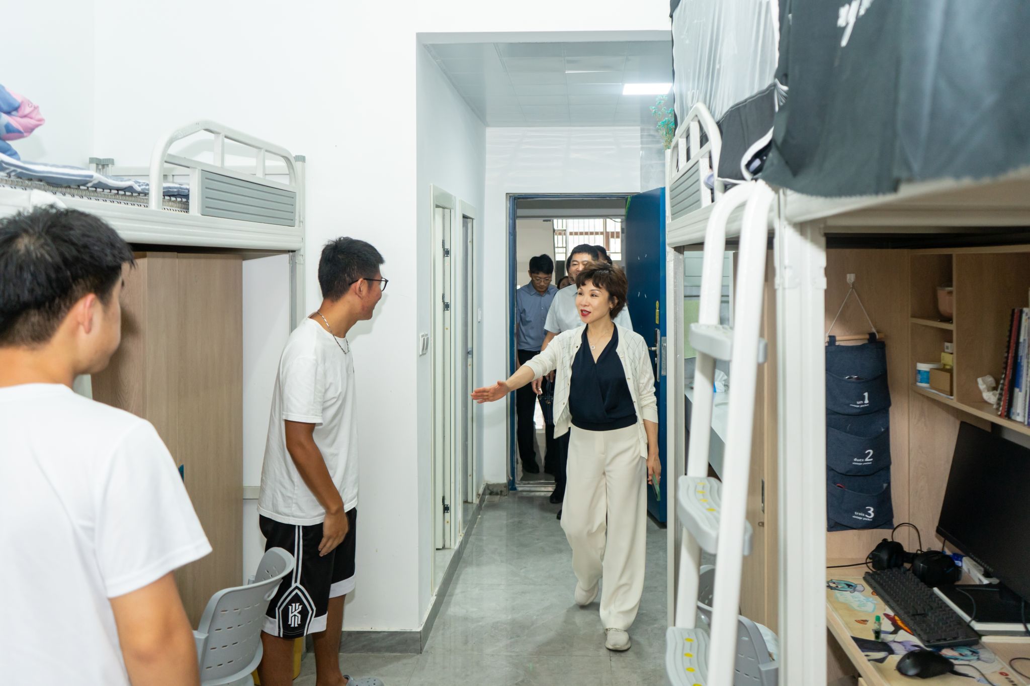 校党委副书记高京燕与学生交流现场9月5日,校党委副书记高京燕一行到江淮校区检查指导工作,深入了解江淮校区建设情况,确保新学期各项工作有序开展。高京燕一行先后到书院、学生宿舍、教学楼、学生食堂及校区主体建设区域。深入书院的学生宿舍和活动中心,她与学生亲切交流,详细询问了目前学习、生活情况,并鼓励大家要适应新环境,做好生涯规划,树立远大理想,勤于实践,为新学期的学习生活做好准备,为下一阶段目标不断努...