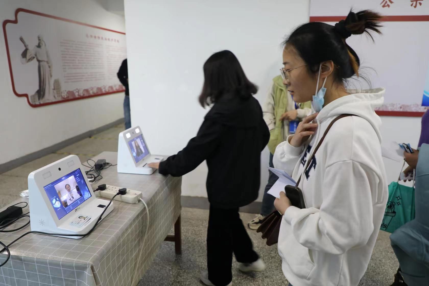 考生入场前,工作人员对每位考生进行机器人脸识别,考生身份验证成功后,方可进入考场。开考后每个考场分配两名监考人员,并设置监控设备,全程录像记录。考试结束后,考生在工作人员的指引下,有序离开考场。
