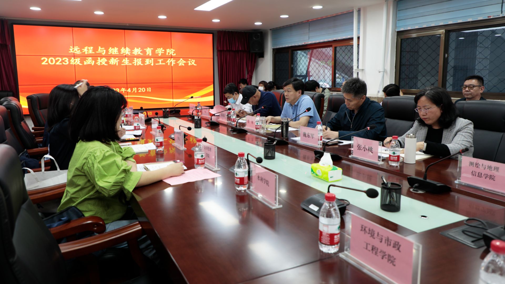 为更好推进继续教育工作发展,做好2023级函授新生报到工作,4月20日下午,远程与继续教育学院在学院培训室召开了2023级函授新生报到工作会议。会议由学院直属党支部书记魏东军主持,学院全体领导班子成员、科室负责人、相关专业学院教学副院长和教学负责老师参加了会议。