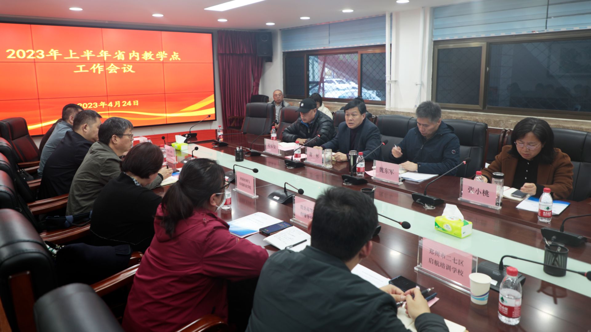 4月24日,远程与继续教育学院在学院培训室召开了2023年上半年省内教学点工作会议,学院全体领导班子成员、省内各教学点负责人、教学平台负责人以及学院各科室负责人参加了会议。会议由学院直属党支部书记魏东军主持。