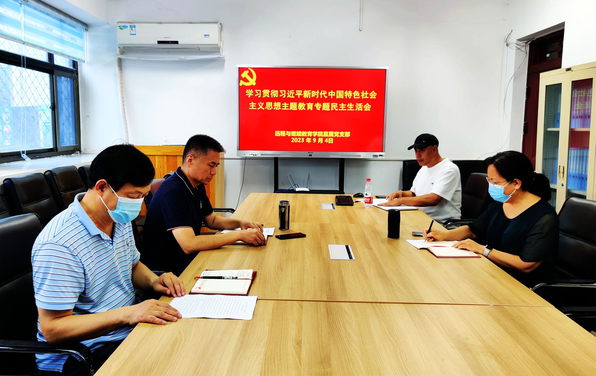9月4日上午,远程与继续教育学院在学院会议室召开学习贯彻习近平新时代中国特色社会主义思想主题教育专题民主生活会。会议由学院直属党支部书记魏东军主持,学院全体班子成员参加会议。