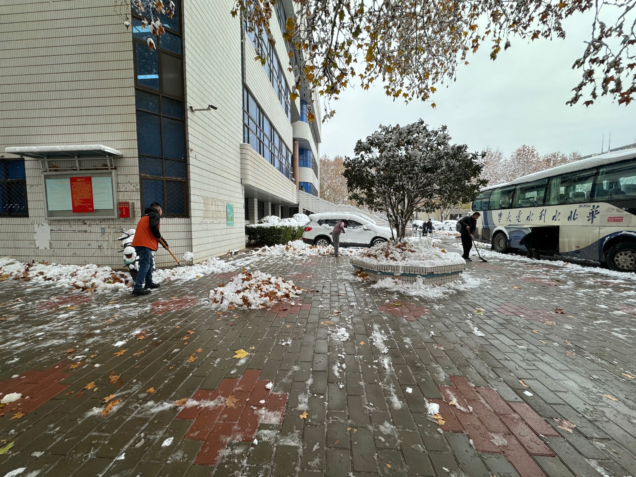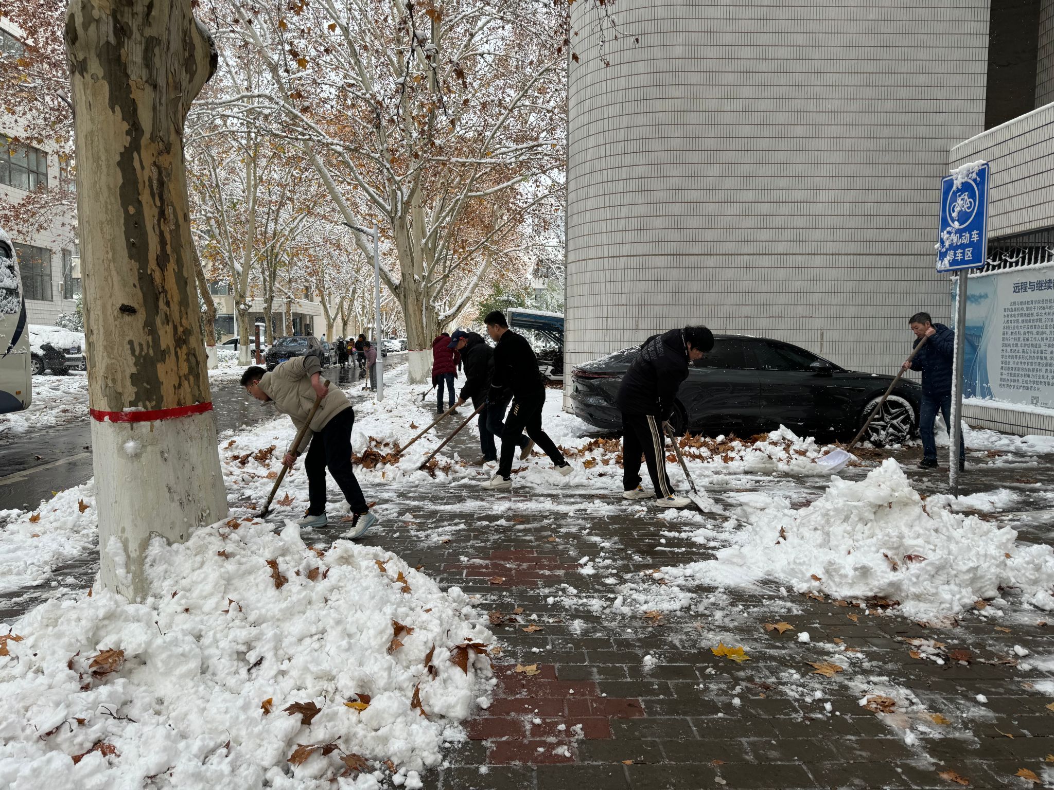 2023年12月10日-11日,郑州遭遇暴雪,校园内积雪较厚,地面湿滑。为保证广大师生的出行安全,远程与继续教育学院于11日上午在花园校区组织学院全体教职工开展扫雪除冰活动。