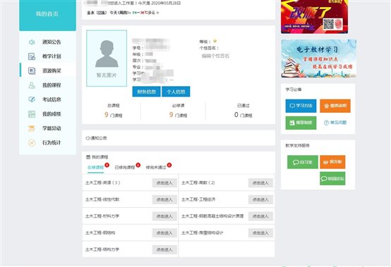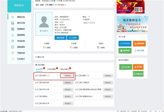 4.我的课程-在修课程(显示的所有课程都需要进行考试)