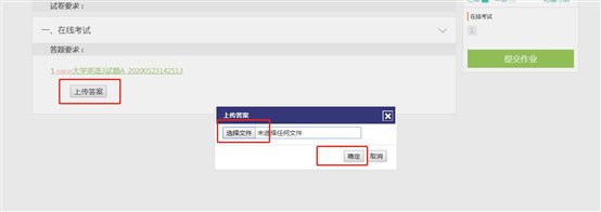 9.考生作答完毕后,点击上传答案-选择文件-确定(答案可上传 Word 文档、PDF 或者图片。注:答案只能上传一份)