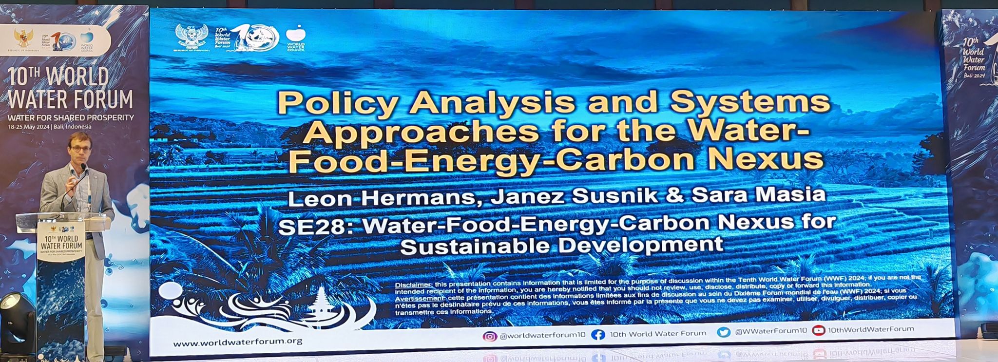 Prof. Leon Hermans presents at the "Water-Food-Energy-Carbon Nexus" side event.