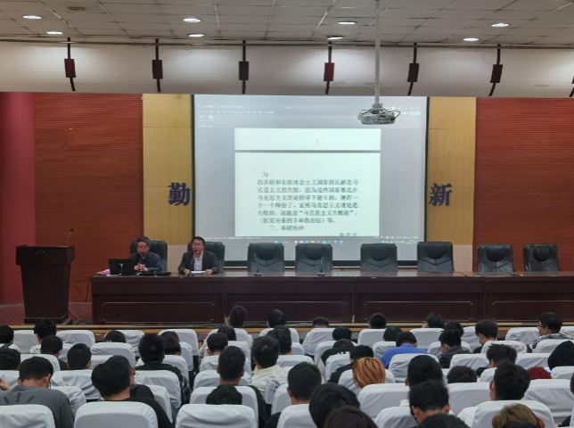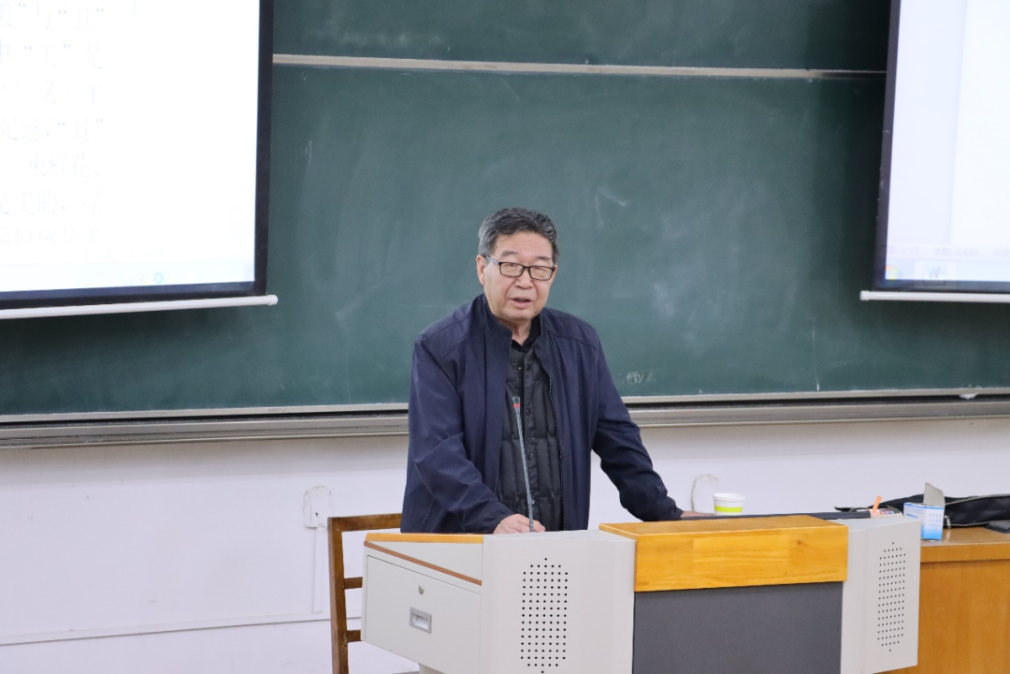 张玉祥教授就中国共产党倡导的“伟大的建党精神为源头的精神谱系”,特别是“守正创新精神”,结合广谱哲学的具体工作,谈了个人体会。他从不同方面用通俗易懂的语言并联系广谱哲学对守正创新精神进行了深刻的解读。他详细解读了广谱哲学的概念,广谱哲学是发源于华北水利水电大学的一门新型交叉学科,它以马克思主义哲学为指导,充分运用结构型数学和系统科学的成果,从1996年正式提出以来,经过二十余年的发展,已形成较为完整的理论体系,并在传统哲学、现代数学等十余个领域得到了应用。张玉祥教授最后回顾其二十余年广谱哲学的工作经验,他指出工作中贯穿的主线就是守正创新精神,坚持马克思主义哲学的指导,坚持在现代科学基础上推陈出新两部分,并多次利用实例详细讲述其在研究过程中如何将数学建模思想如何融合进思想理论的研究过程。张教授对概念的讲解由浅入深,内容丰富,语言形象生动亲切自然,使在场学生受益匪浅,掌声不断。