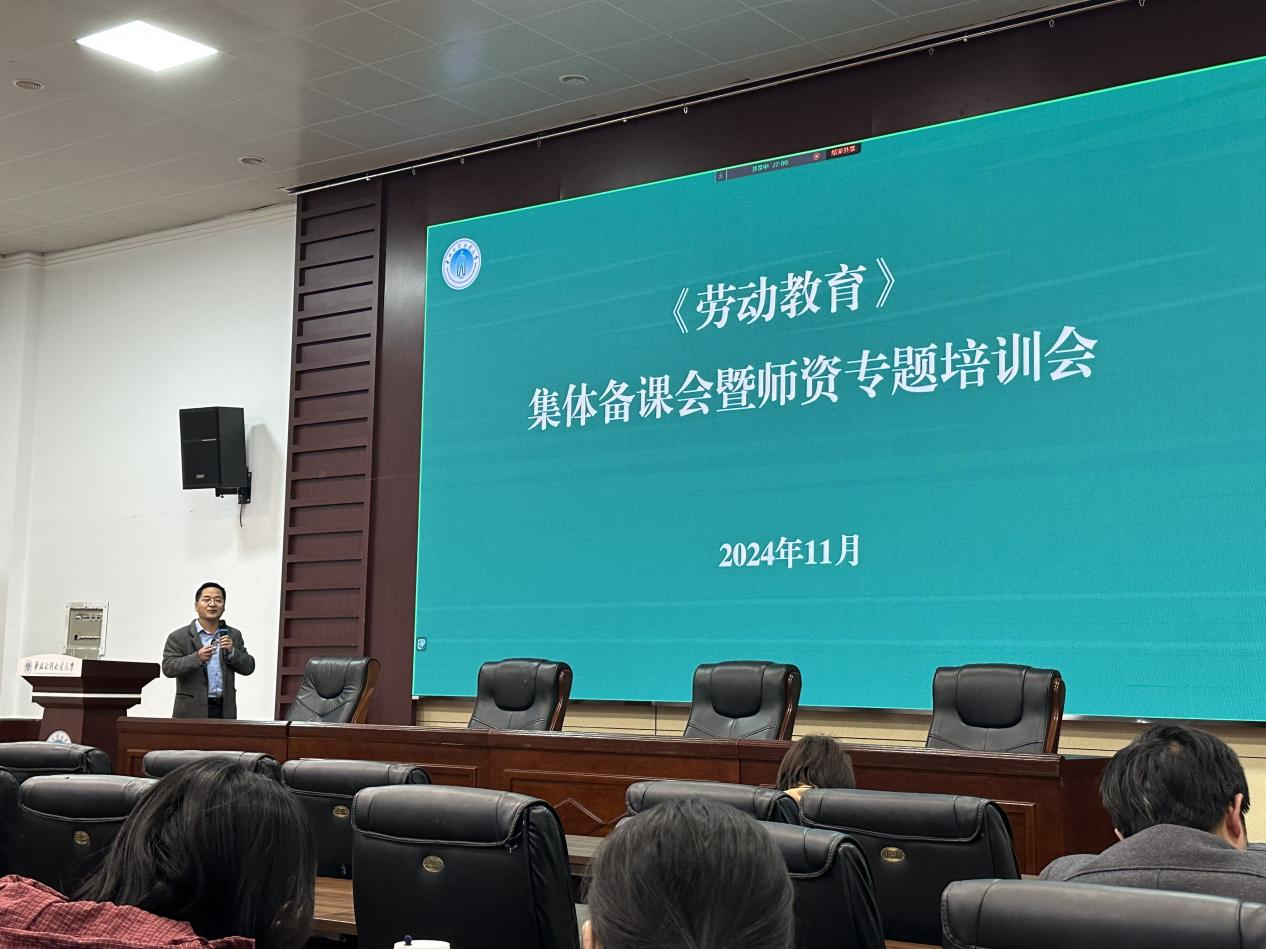 胡德朝在会议中部署2024-2025学年第一学期《劳动教育》课的教学工作。胡德朝围绕劳动课程教学安排、教学设计、教学内容、实践环节、课程考核、成绩管理等内容进行了详细介绍和讲解。本学期《劳动教育》还通过严抓学生宿舍安全卫生工作促进消防安全,强化学生辅导员、育人导师在劳动教育育人中的作用和效果,由全体2024级本科生辅导员、育人导师共同参与,负责实践环节的组织和认定。通过集体备课,教师们对如何更好地融入劳动教育元素到日常教学中达成了共识,共同学习相应的教学内容和活动方案。此次备课会不仅涵盖了劳动教学内容的传授,还包括了创新劳动实践的探索,旨在激发学生的创造力和实践能力。最后,他对全体劳动教育指导教师提出了三点要求:一是积极做好动员,全面向学生讲解课程要求;二是加强组织引导,做到全过程参与;三是结合专业特色,指导学生完成劳动教育评价档案。