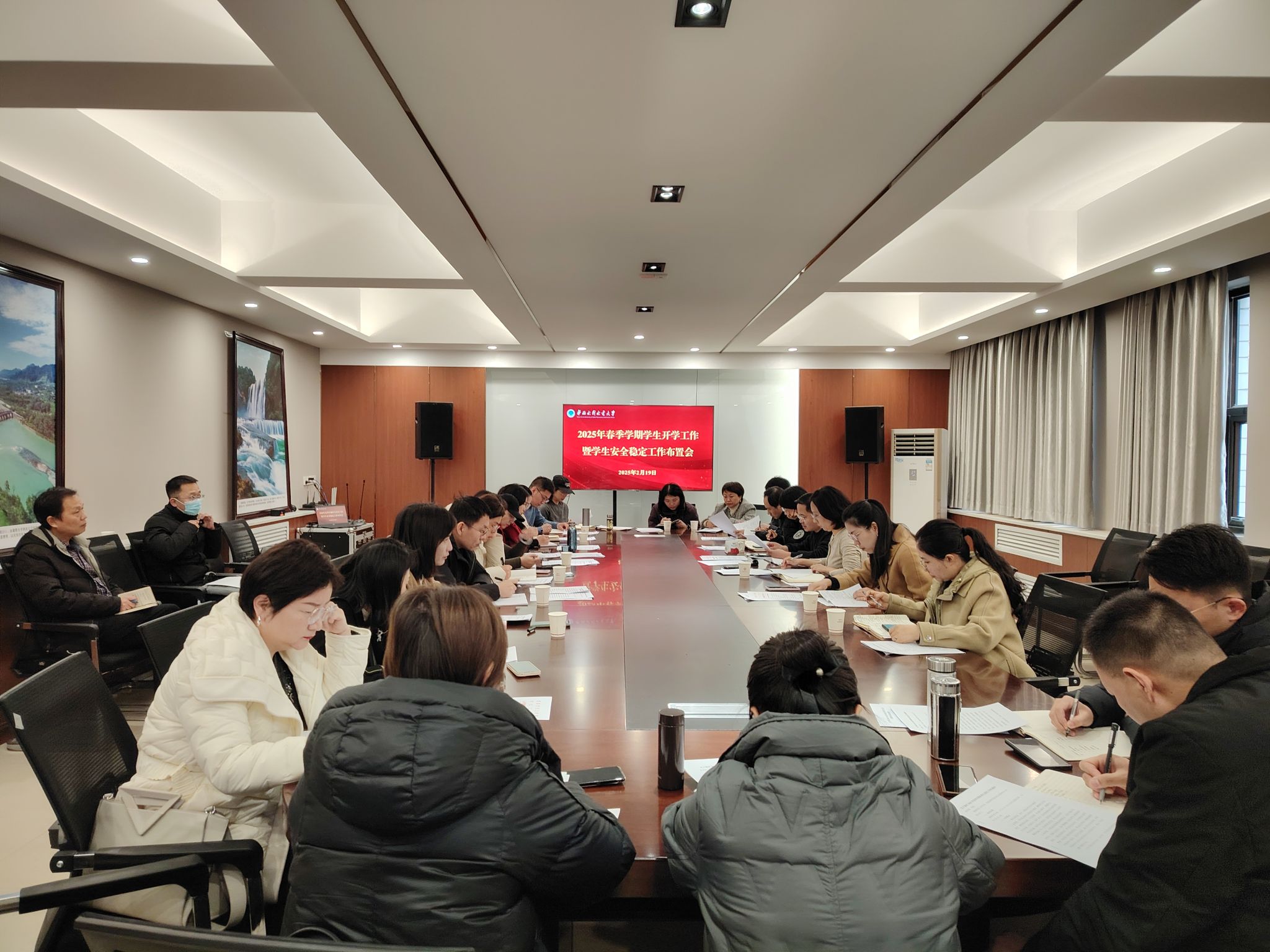 为了贯彻落实全省教育系统关于做好开学前安全防范工作的相关会议精神和我校安全稳定工作会议精神,进一步做好春季学期学生开学工作暨学生安全稳定工作,切实推动各项工作抓实落细。2月19日上午,学生工作部在龙子湖校区文体活动中心第三会议室召开专门会议,部署2025年春季学期学生开学工作暨学生安全稳定工作。学生工作部班子成员、各学院党委副书记在现场参会,各书院党委副书记、副院长在线上参加。会议由学生工作部(处)部(处)长郭瑾莉主持。