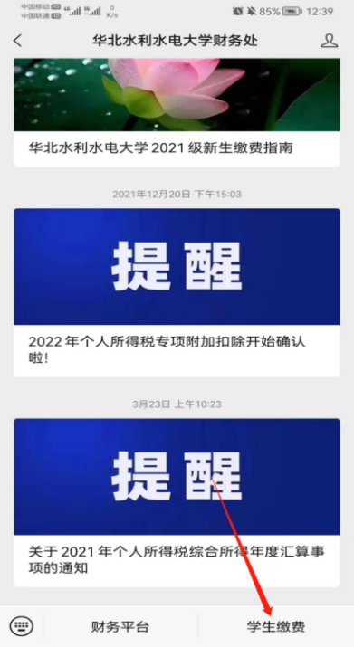1、关注“华北水利水电大学财务处公众号”(搜索微信公众号“华北水利水电大学财务处”)