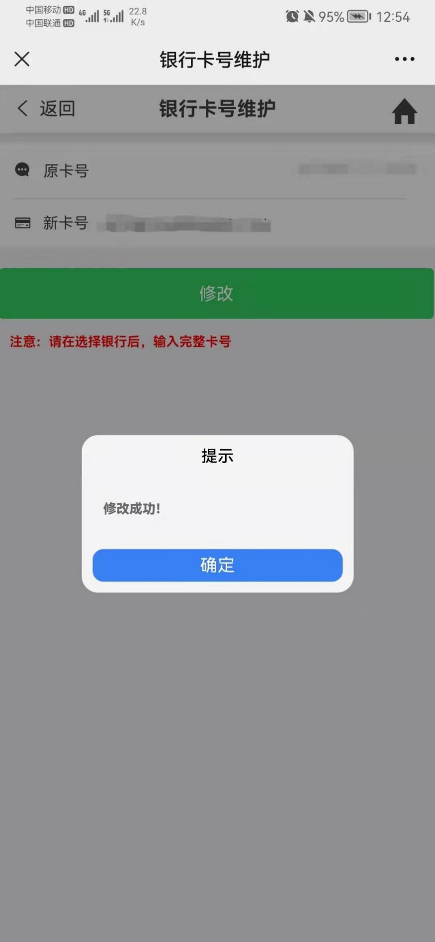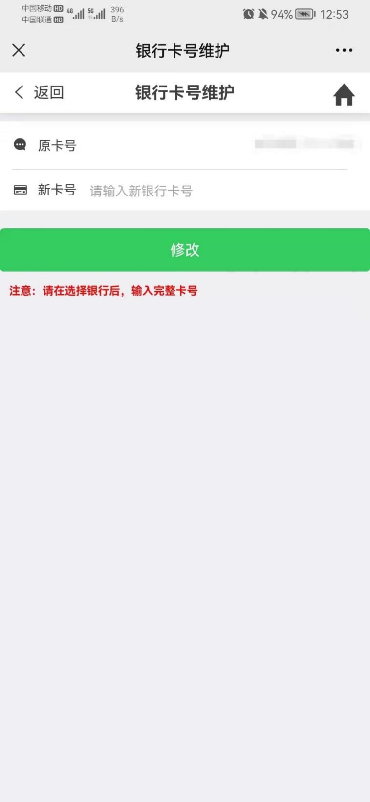 【操作提示】:若无误则结束,若有误则填入新卡号并点击修改,提示修改成功后即为修改完成。