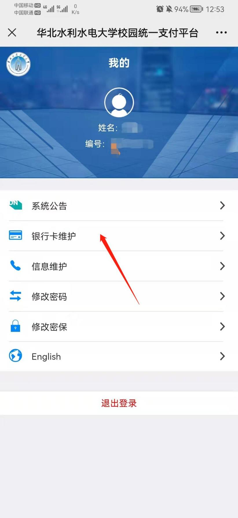 6、点击“银行卡维护”。