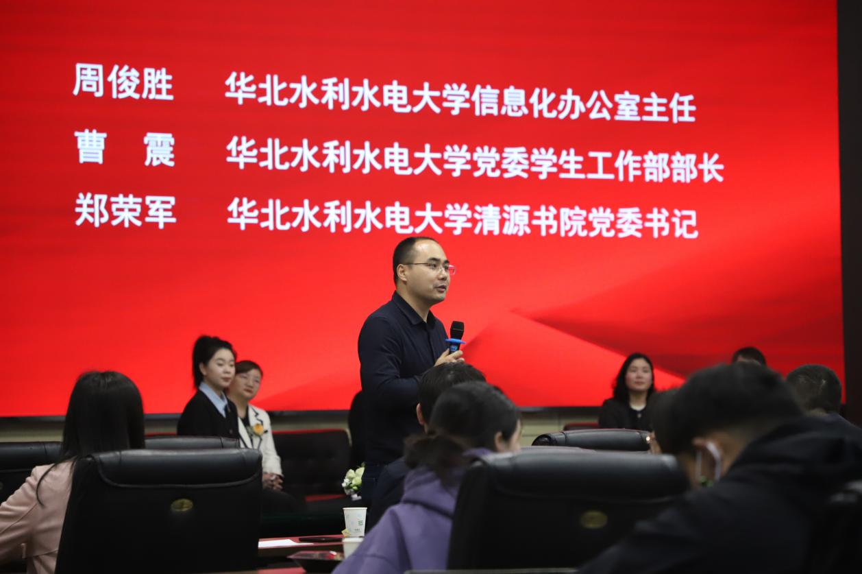 本次培训由党委学生工作部主办,管理与经济学院“思政教育网络平台”辅导员工作室承办。华北水利水电大学党委学生工作部部长曹震、信息化办公室主任周俊胜、清源书院党委书记郑荣军、管理与经济学院党委书记宋冬凌出席本次培训活动。信息工程学院党委副书记王婧、水利学院党委副书记张长辉、国际教育学院党委副书记王世佳、河南财经政法大学计算机与信息工程学院团委书记张晓静做主题演讲,各学院、书院辅导员代表参加培训活动,活动由管理与经济学院辅导员任滋森主持。