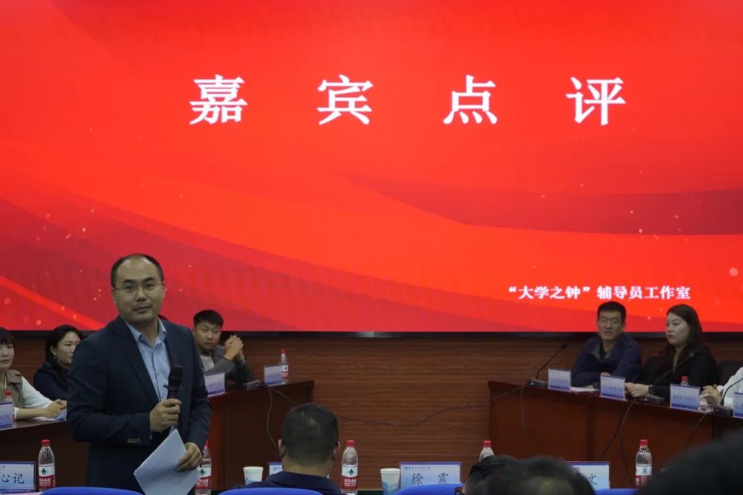 本次活动由党委学生工作部主办,公共管理学院“大学之钟”辅导员工作室、数学与统计学院“数”苗辅导员工作室承办。辅导员韩肖艳主持。江淮校区管理委员会副书记、副主任徐震、党委学生工作部部长曹震;清源书院党委书记郑荣军、善水书院党委书记周文、清源书院院长李心记、善水书院院长车华、党委学生工作部副部长范利那、综合办公室副主任张泽中、清源书院副院长张宏洋、善水书院党委副书记赵中建、善水书院副院长郭文献作为点评嘉宾出席本次活动,江淮校区清源书院、善水书院全体育人导师参与本次活动。