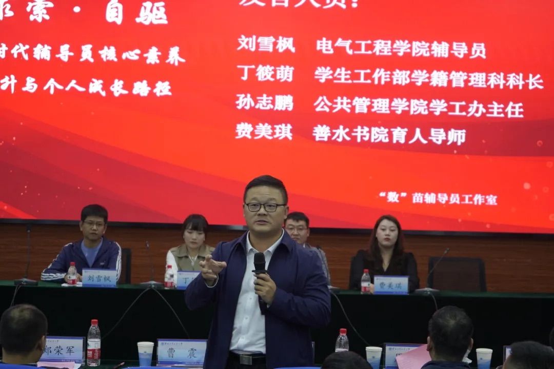 围绕论坛主题“求索、自驱——新时代辅导员核心素养提升与个人成长路径”的主题,电气工程学院辅导员刘雪枫、学生工作部学籍管理科科长丁筱萌、公共管理学院学工办主任孙志鹏、善水书院育人导师费美琪分别致辞讲演。