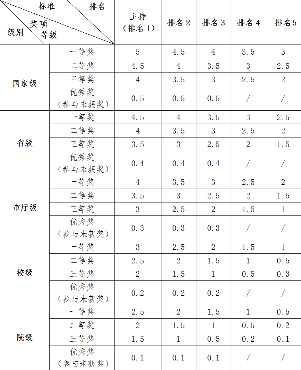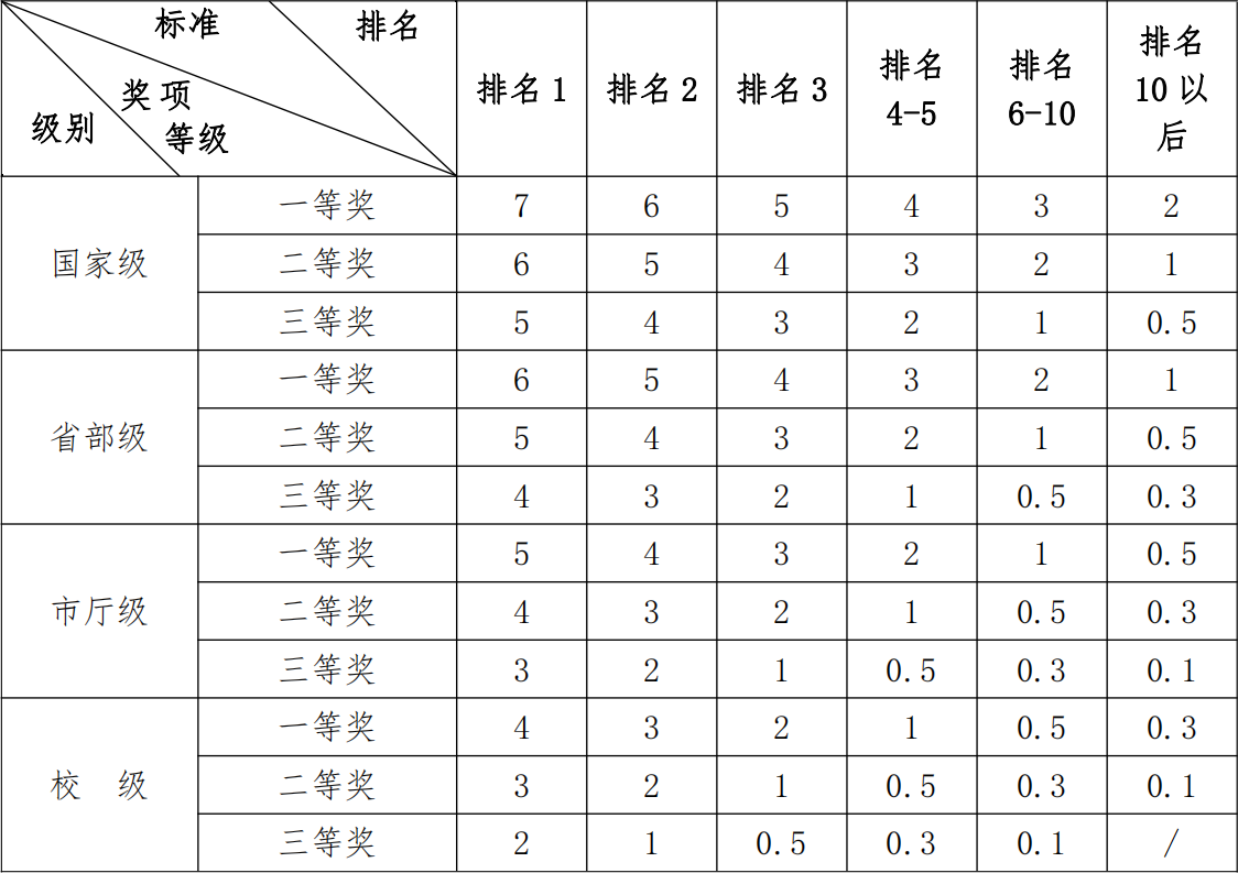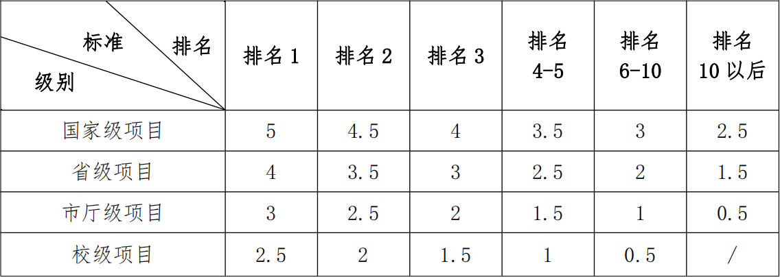 2.同一项目同一竞赛多次获奖,只计分一次,按最高奖项计分。