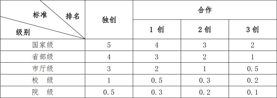 表2:竞赛活动获奖学分认定标准