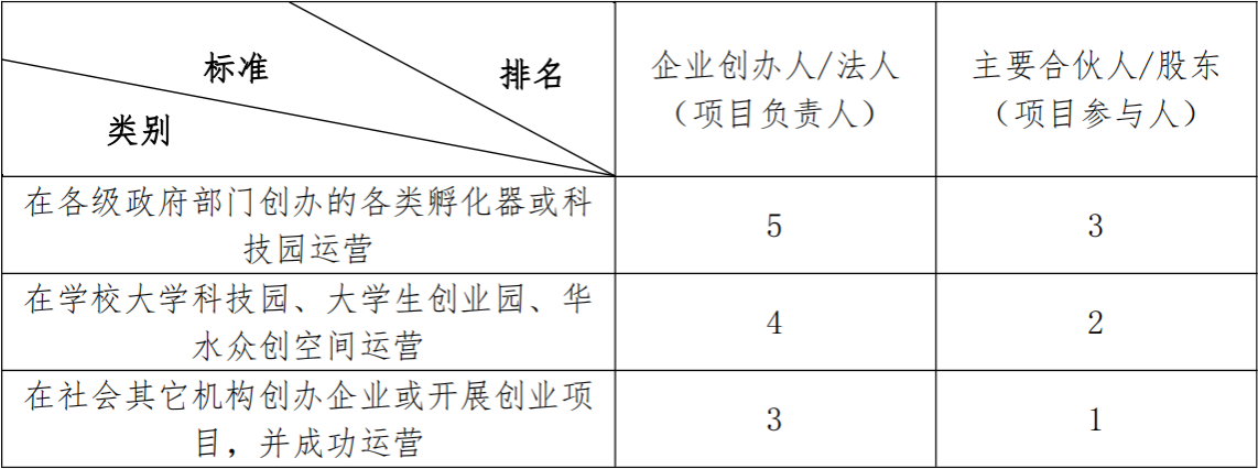 表10:创办企业或项目入驻孵化器及科技园学分认定标准