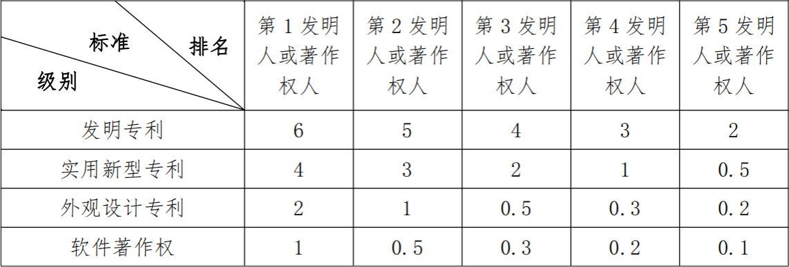 表6:获得专利或软件著作权学分认定标准