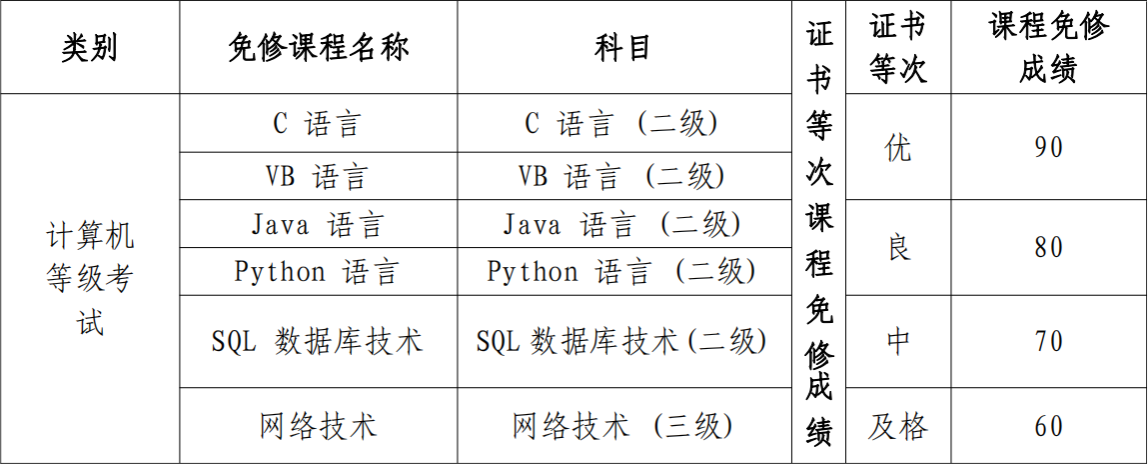 5.参加全国大学生计算机等级考试(二级及以上)且获得证书者,可以申请免修对应的信息类课程。