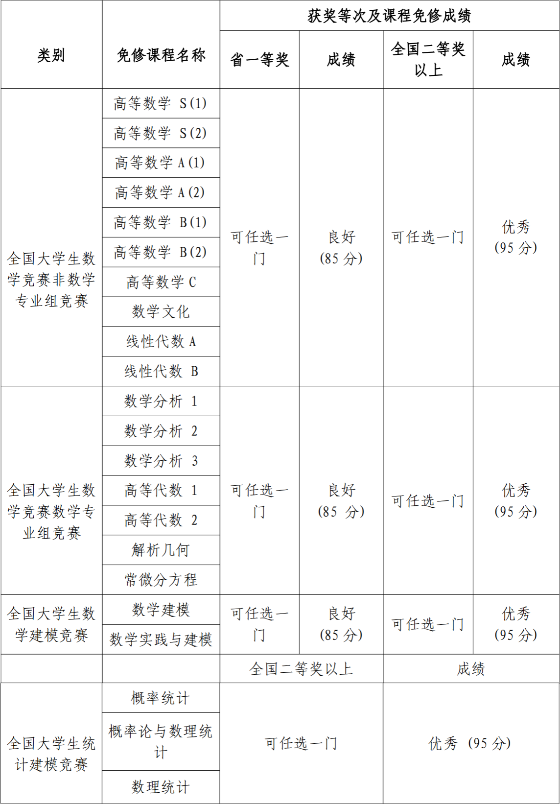 3.参加全国大学生数学竞赛专业组和非数学专业组获奖者,可申请免修数学类课程。