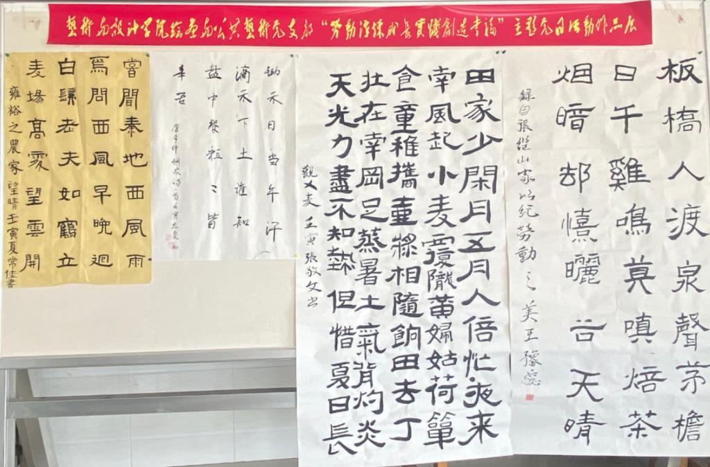 在首个全省“劳动教育周”(5月5日至5月12日)期间,艺术与设计学院绘画与公共艺术学生党支部围绕活动主题,开展“劳动淬炼成长实践创造幸福”绘画、书法及摄影作品展主题党日系列活动。