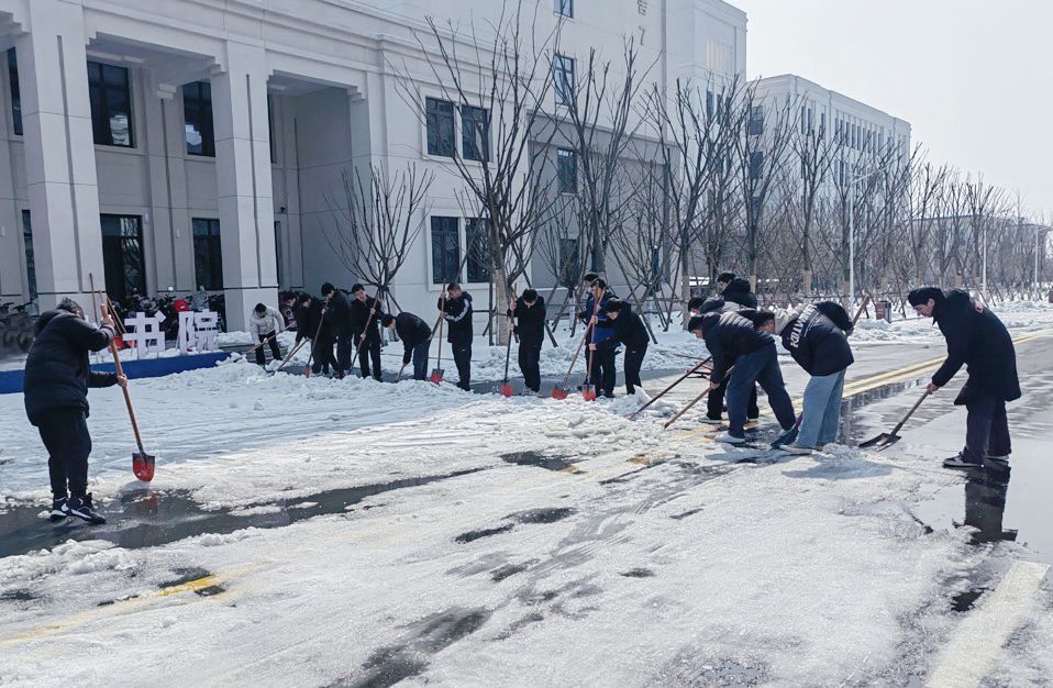 劳动出真知,实践促成长。慧泉书院师生拿着扫雪、破冰工具,清扫书院大门周边以及校园主干道上的积雪。在雪白的晶莹世界中,处处都是奋力除雪的身影。