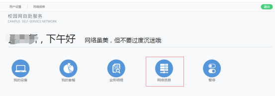 5、教工账号允许绑定和同时10个终端在线,学生账号允许同时1个终端在线,当终端登录数达到最大后会进行抢占,最先认证的终端会掉线(可通过自助服务页面解除或下线终端)。