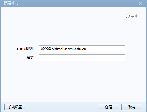 此外若希望老邮箱中的邮件保存到本地,可以使用foxmail邮件客户端(或其他邮件客户端选择IMAP服务),E-mail地址填写自己帐号@oldmail.ncwu.edu.cn。