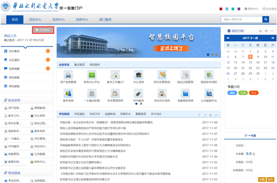 点击门户页面左上部分的个人中心,进入绑定页面,如图: