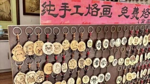 踩着汉画街的青石板,缓缓推开“老周烙画”的木门,木头香混着炭烧的醇厚气息,径直漫入鼻尖、裹住周身。300℃至800℃的紫铜烙铁往梨木上一贴,“滋啦”一声轻响,棕褐的炭痕顺着木纹漫开,晕出“墨分五色”的细腻层次。我想这“以火为墨”果真如民间所言,曼妙极了。