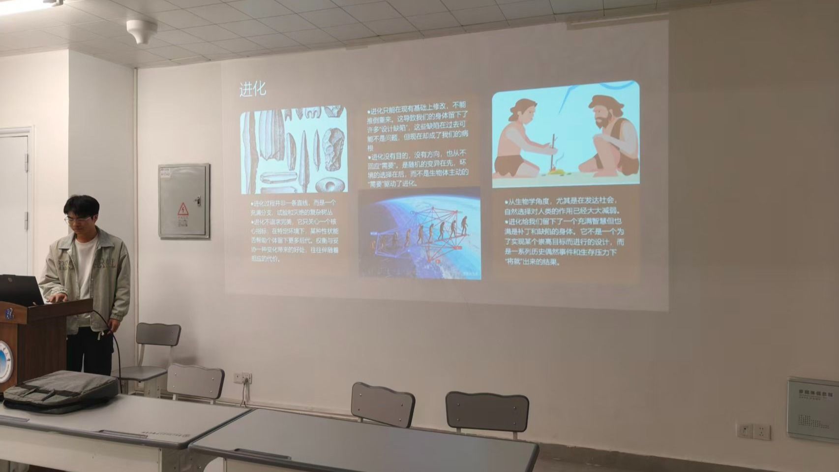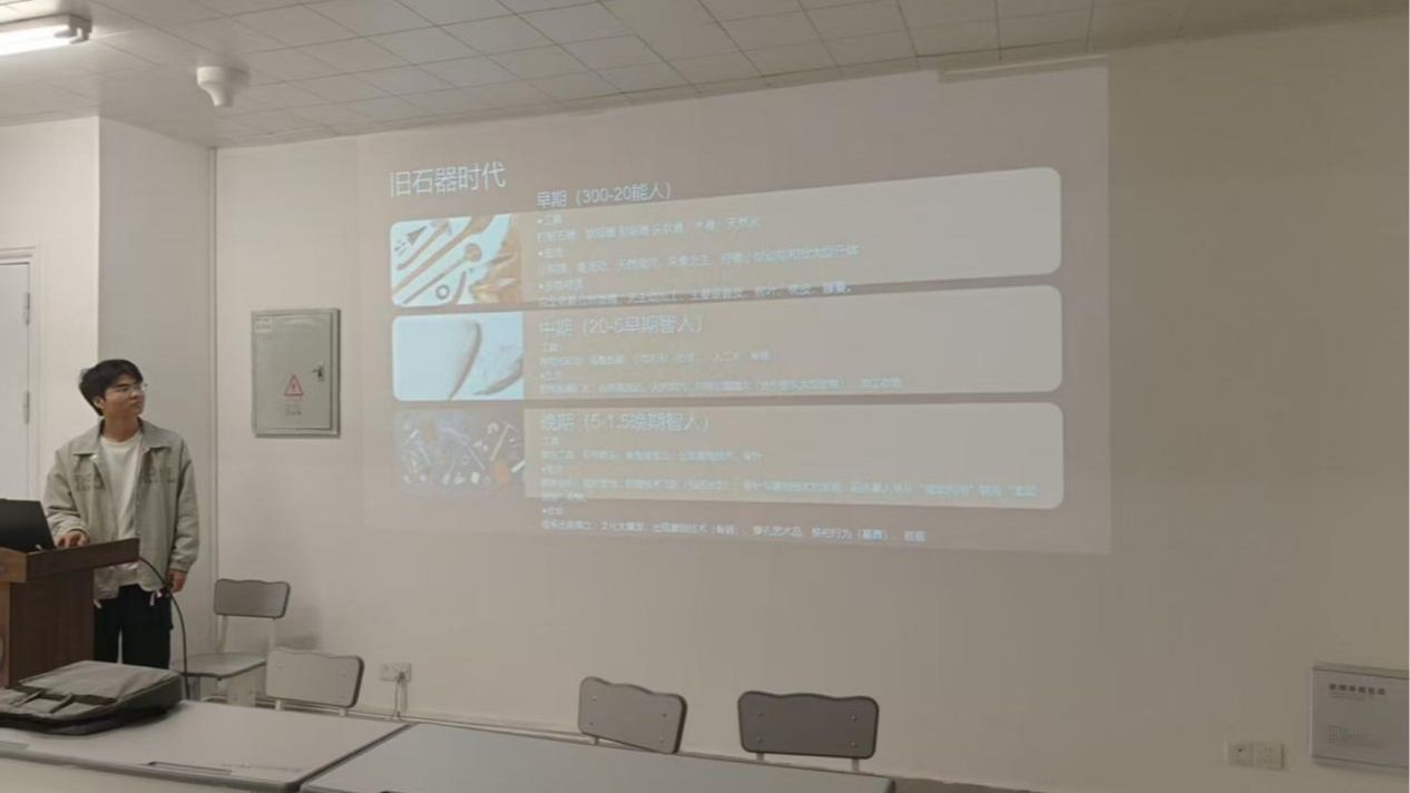 讲座伊始,听众遍览史前时代进化的过程,从远古阶段到智人阶段,古老的祖先凭借自己的智慧在艰苦的条件下探索,用自己的力量一步一个脚印刻画并改变着自己的主观世界。尽管在无尽的宇宙中人类是渺小的,但人类依然不屈地书写自己的历史和文化。