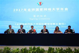 签署《金砖国家网路大学国际管理理事会章程》仪式现场