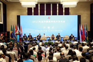 7月2 - 3日, 2017年金砖国家网络大学年会举行了全体大会,以及国际管理理事会会议、成员高校校长圆桌会议、中国国内协调委员会会议、六个优先合作领域国际专题工作组会议共9个分会场的小组会议。金砖五国教育部门代表、各成员高校代表围绕“务实合作与国际化”这一主题开展了务实高效的交流研讨。