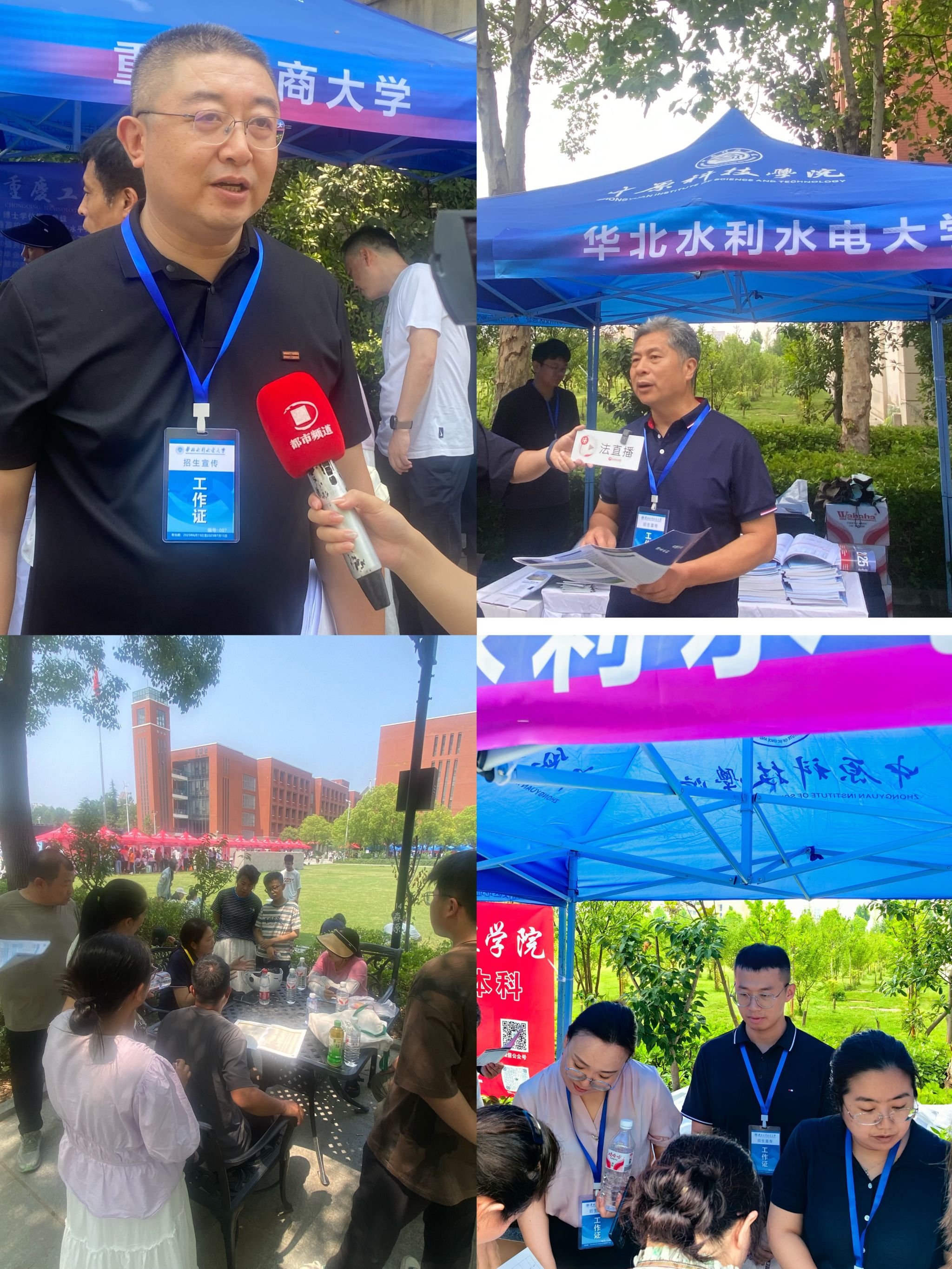 河南广播电视台都市报道、大河报、法直播等多家媒体现场采访我校招生宣传负责同志。